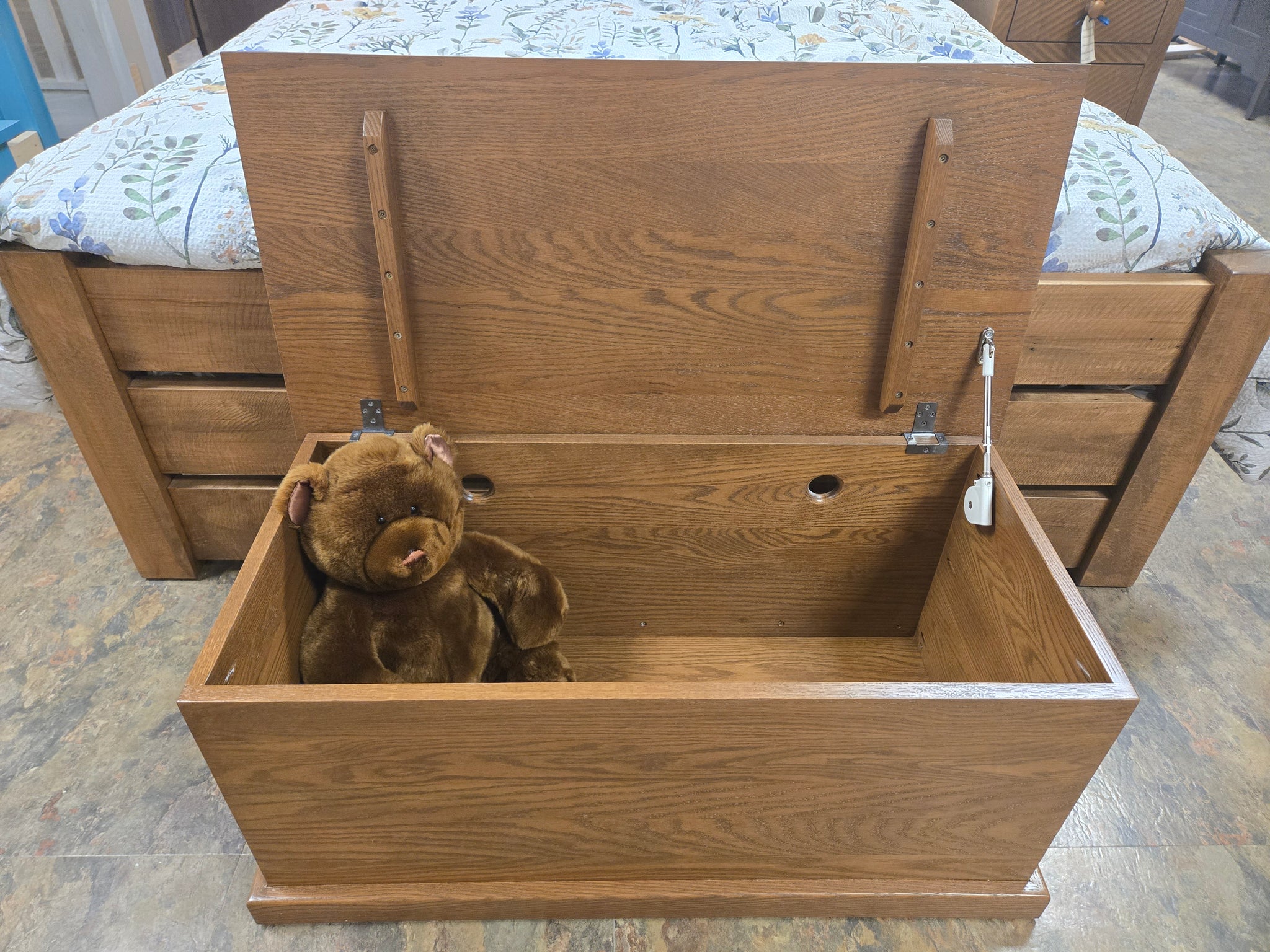 Pictured in Oak with an Early American stain.